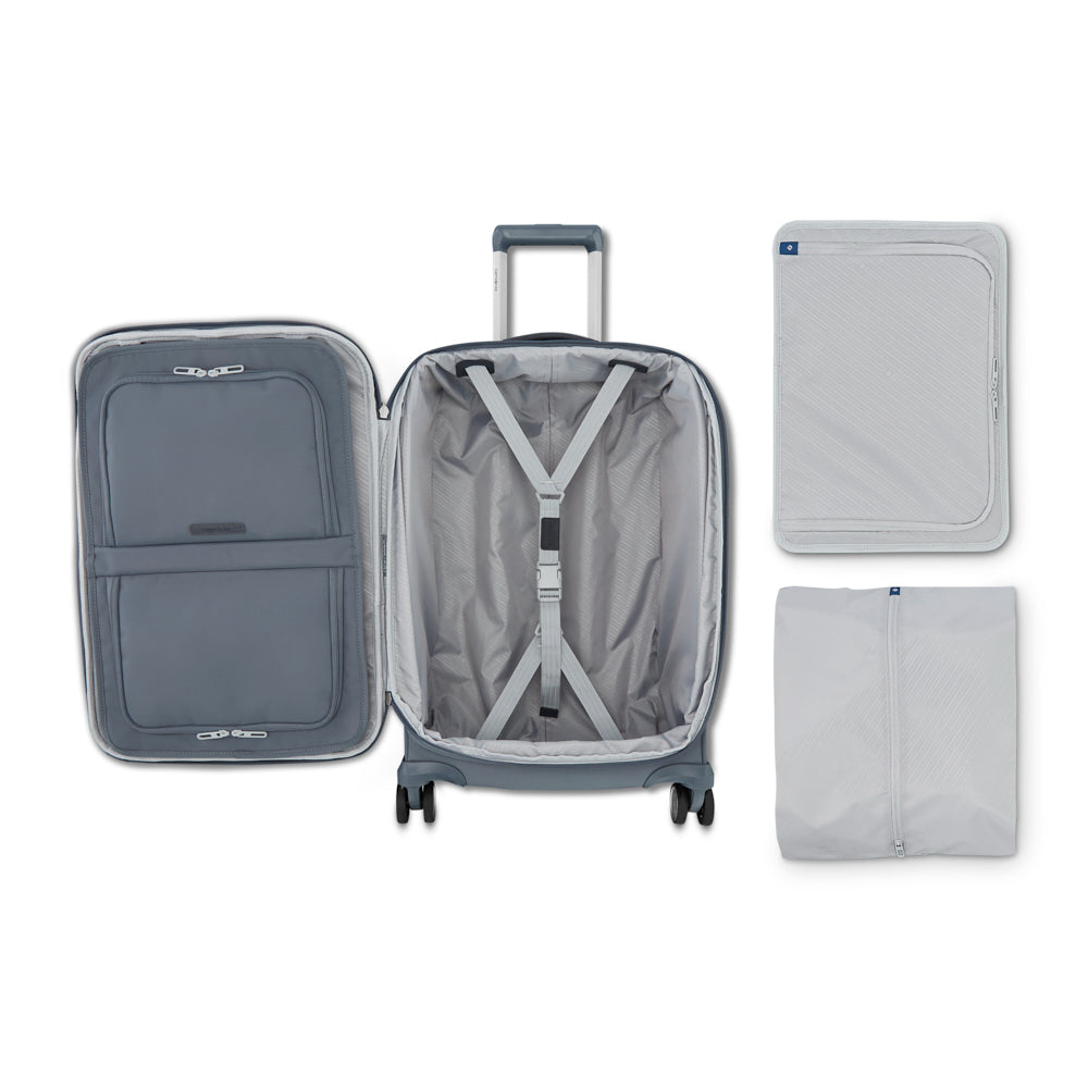 The Elevation Plus Softside Carry-On Spinner uses soft forms and contemporary materials for a beautiful, minimalist aesthetic. Packed with thoughtful features like a RightHeight™ handle, recessed 360º dual spinner wheels, and an optional 1.5” expansion, this is the perfect bag for short trips or a weekend away.