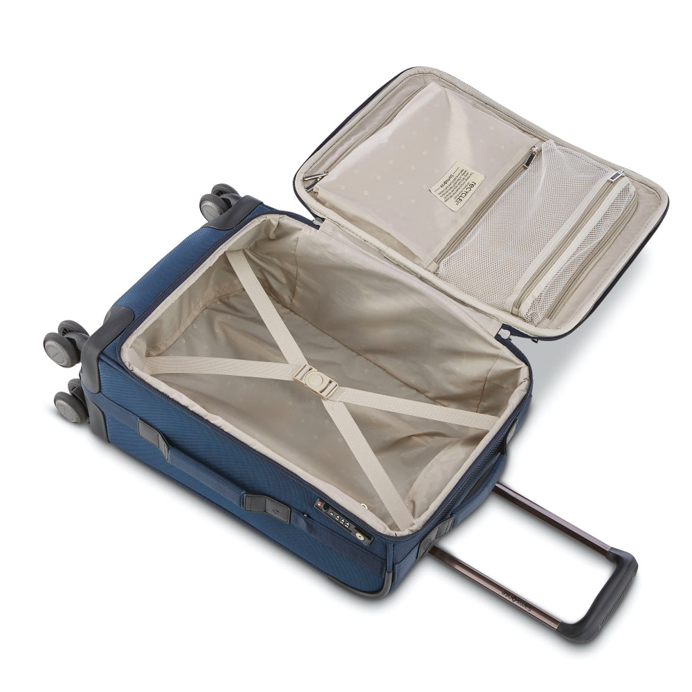 A feature rich new look to carry on your next journey, the NuRoad Spinner is sure to go the distance. Featuring two interior packing compartments, and bonus RIFD & 3-1-1 friendly bags make this perfect for the “carry on only” crowd.