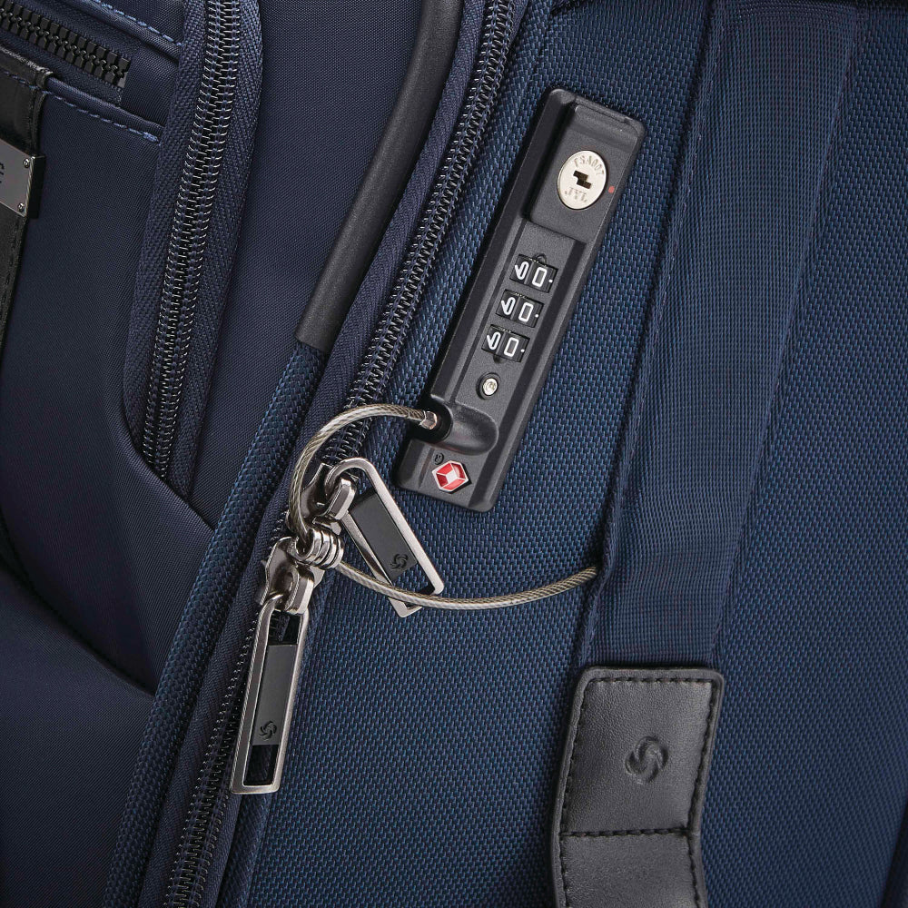 - Cable TSA Lock: TSA-approved cable lock threads through zipper pulls to secure access to the main compartment