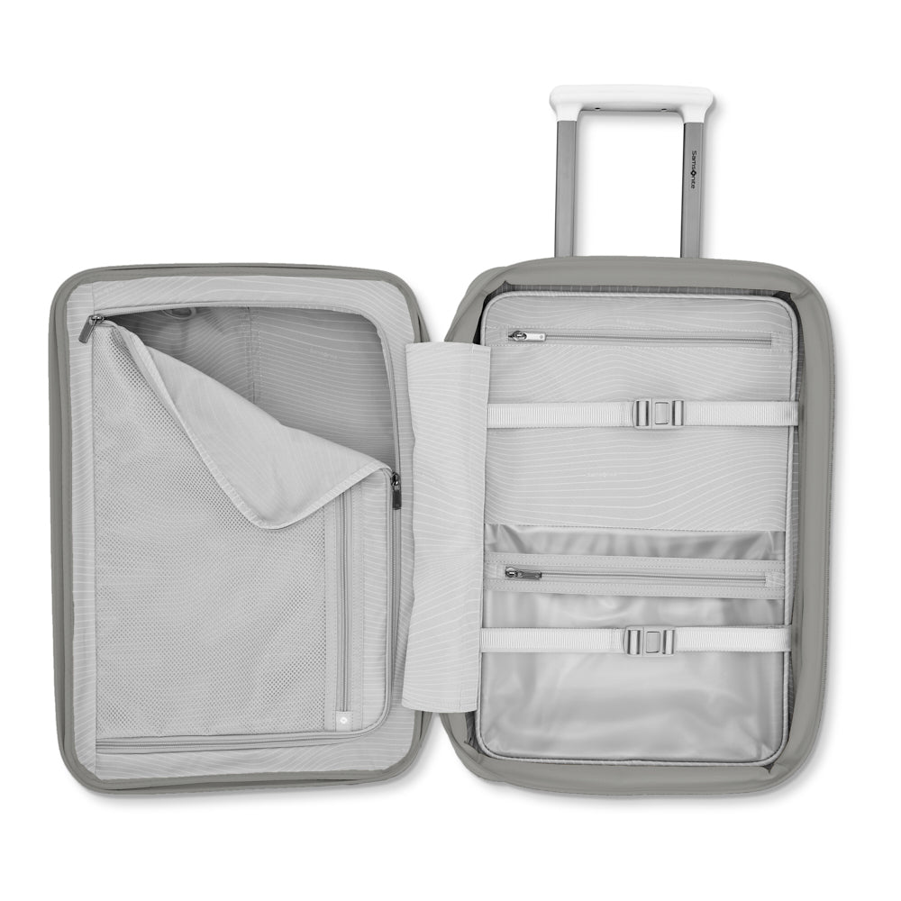 Sleek, chic, and ultra-lightweight, the Venue X Carry-On balances style and function. At just 5.7 lbs, organization is seamless with the integrated KompressPak™ divider, WetPack™ and expandable packing cube ideal for shoes, clothing or even small accessories. Dual spinner wheels give you the freedom to move effortlessly through city streets, while a discretely hidden trolley hook makes carrying extra bags a breeze.
