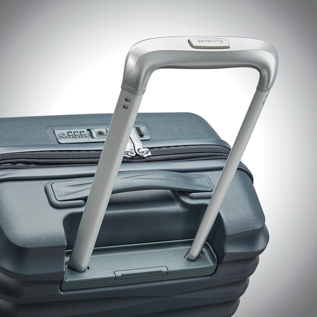 - Ergonomic pull handle features a slide-out privacy ID compartment at its base