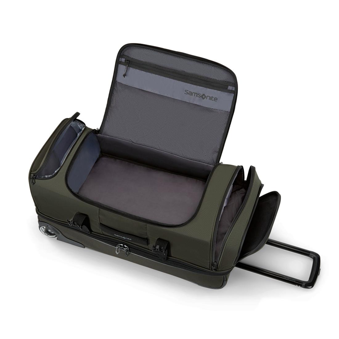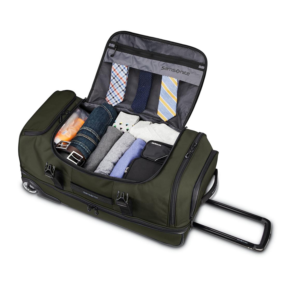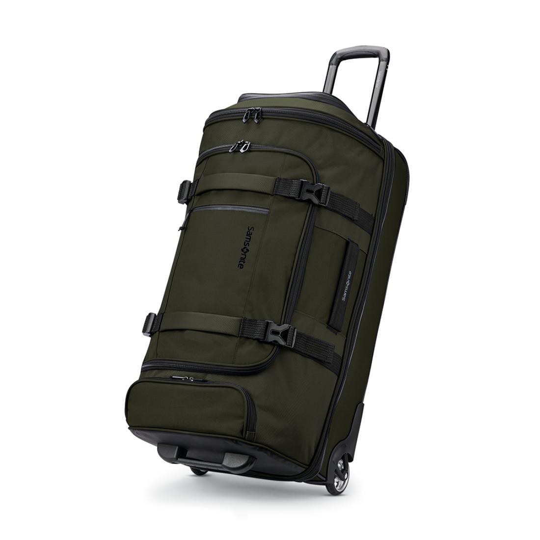 Packed with capacity, the Detour Duffel will protect your belongings on the toughest of trips. Built with long-lasting, ultra-durable water-resistant polyester, this wheeled duffel features two separate packing compartments. The structured lower half is perfect for more delicate items, while the vast upper compartment can hold loads of clothes, features a dedicated shoe pocket, as well as a separate water-resistant zippered compartment. Travelling with larger items? Simply unzip the internal divider curtain and enjoy an unobstructed full capacity layout for all your gear. Rubberized corner protectors and kick-plates protect against wear and tear.