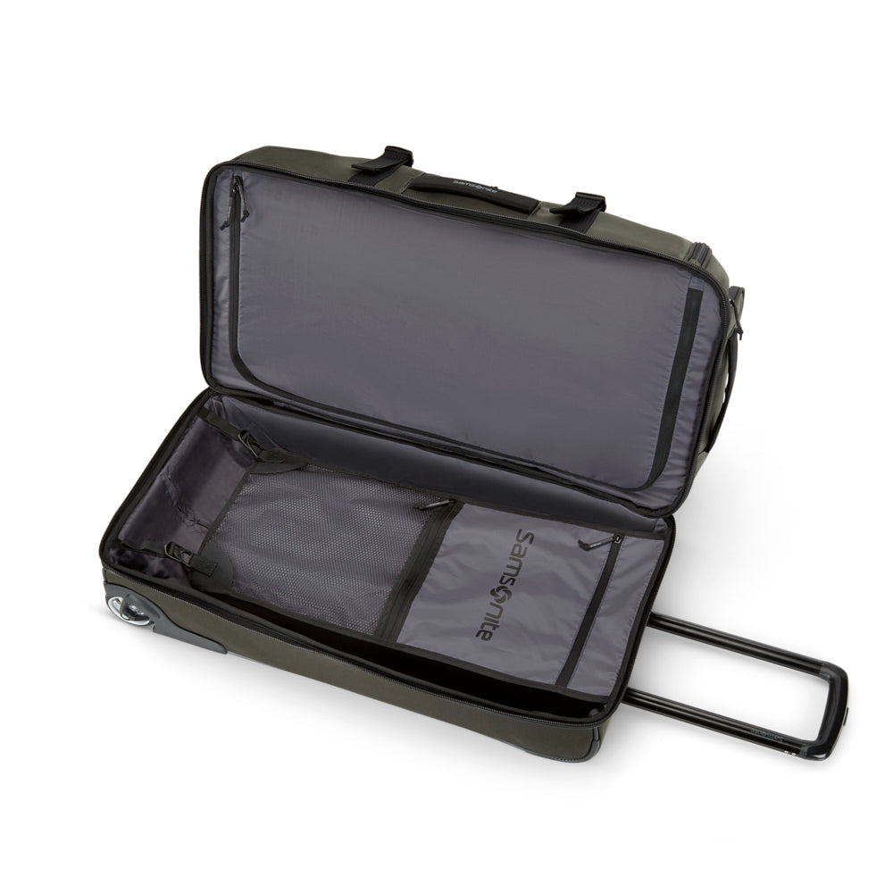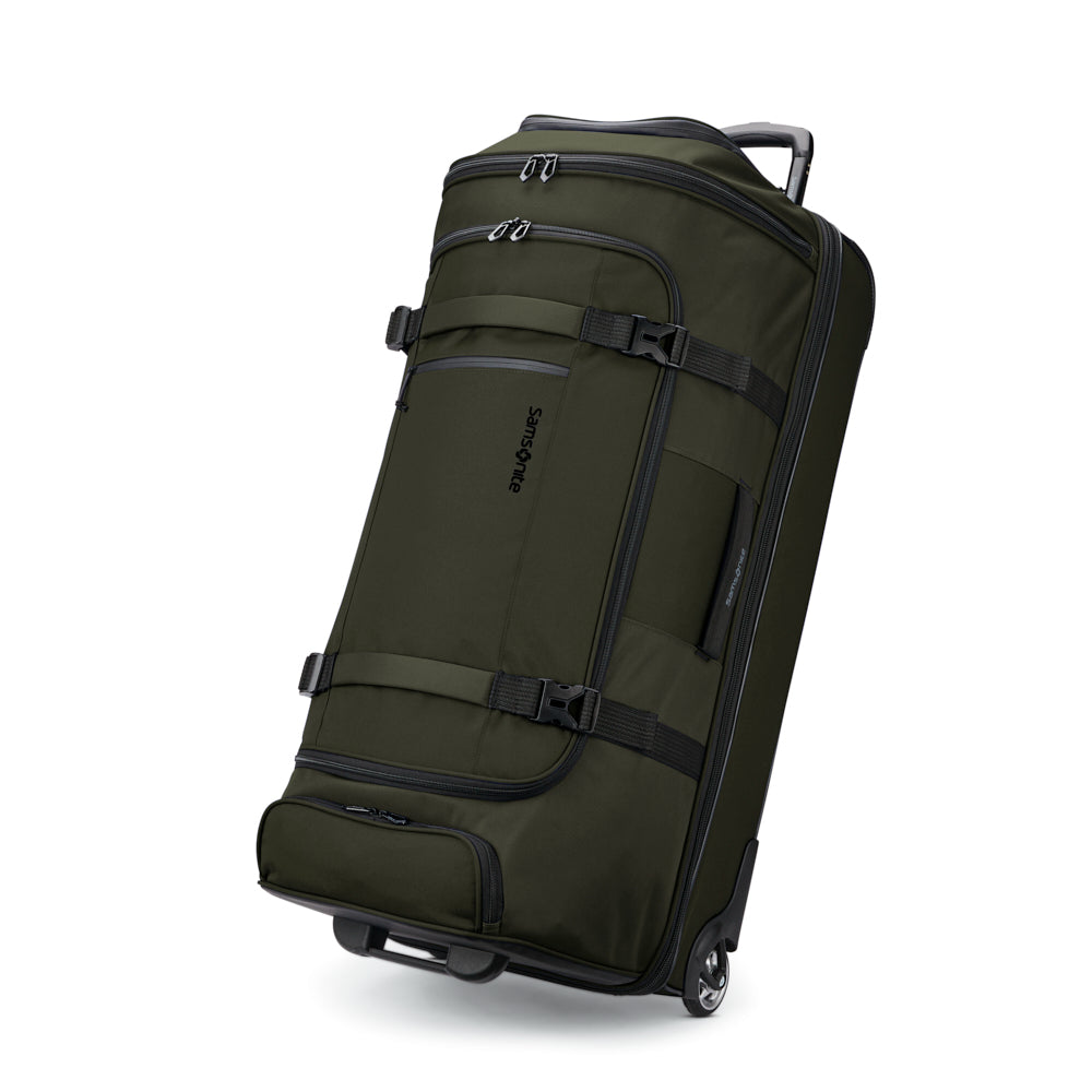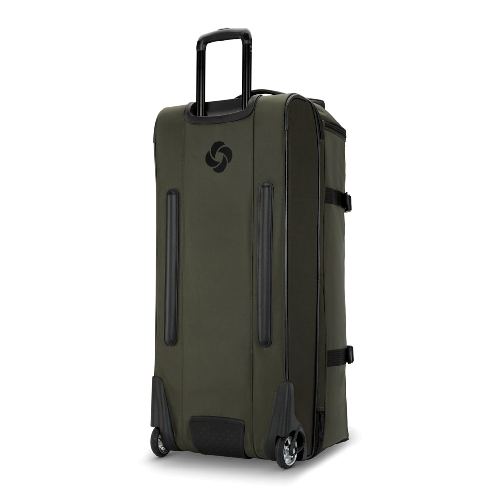 Packed with capacity, the Detour Duffel will protect your belongings on the toughest of trips. Built with long-lasting, ultra-durable water-resistant polyester, this wheeled duffel features two separate packing compartments. The structured lower half is perfect for more delicate items, while the vast upper compartment can hold loads of clothes, features a dedicated shoe pocket, as well as a separate water-resistant zippered compartment. Travelling with larger items? Simply unzip the internal divider curtain and enjoy an unobstructed full capacity layout for all your gear. Rubberized corner protectors and kick-plates protect against wear and tear.